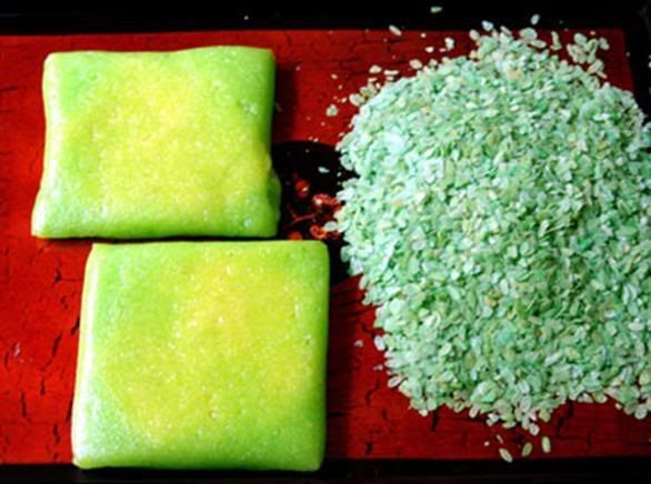 Cũng gạo nếp với đậu xanh nhưng hương vị bánh cốm thì lại khác với bất kỳ loại bánh nào. Cốm làm từ gạo nếp non, nhân gồm đậu xanh và dừa. Cả vỏ và nhân bánh đều được xào lẫn với đường, khi thưởng thức bánh khó mà biết rõ được phần nào ngon hơn.